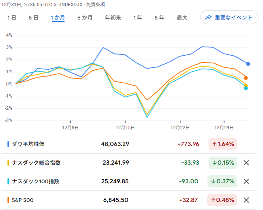 | NYダウ | 47,716.42 | 48,063.29(+0.73%) |