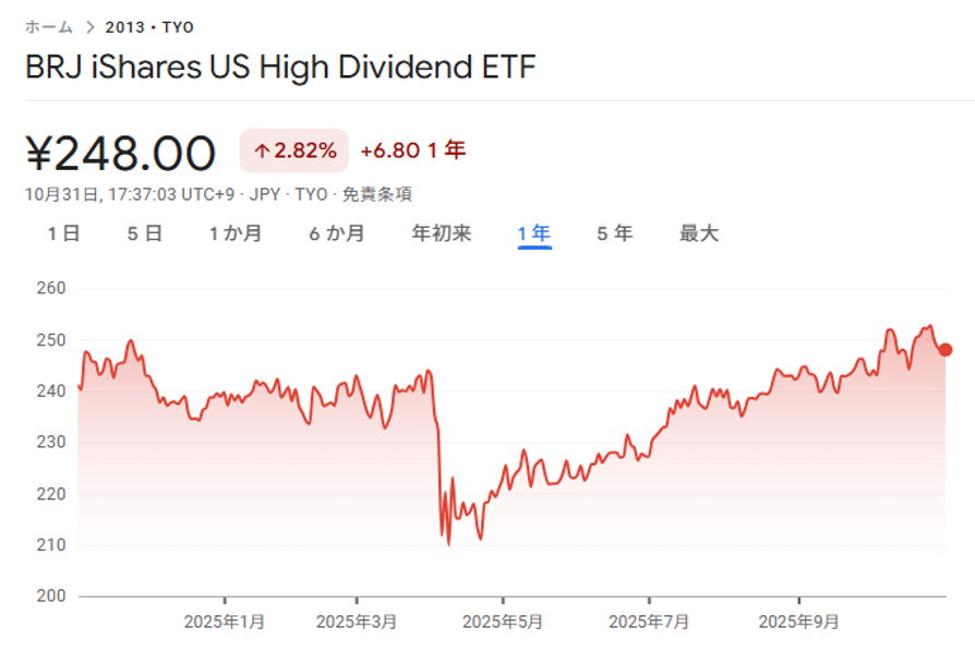 円換算では、東証ETF「iシェアーズ 米国高配当株 ETF」(2013)の1か月チャートになります。