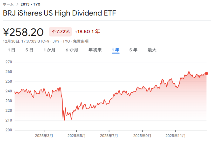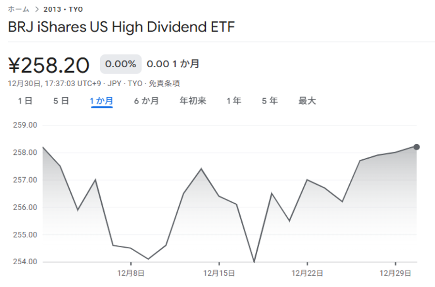 円換算では、東証ETF「iシェアーズ 米国高配当株 ETF」(2013)の1か月チャートになります。