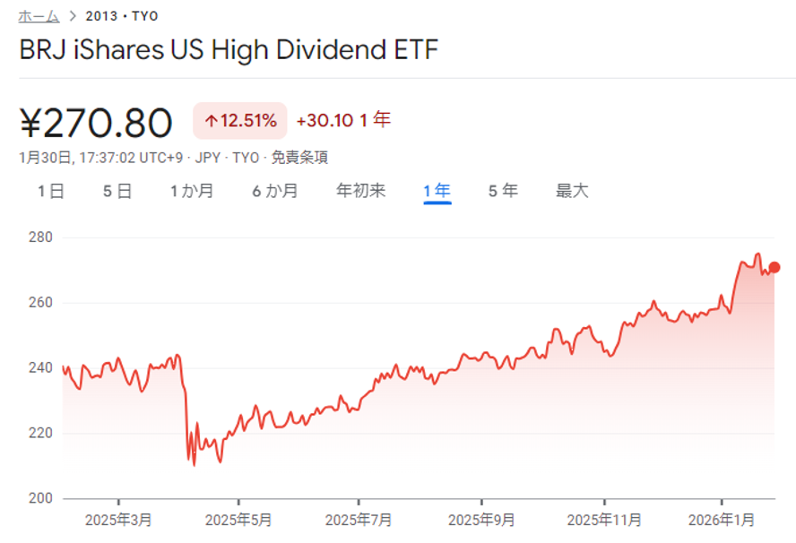 円換算では、東証ETF「iシェアーズ 米国高配当株 ETF」(2013)の1か月チャートになります。