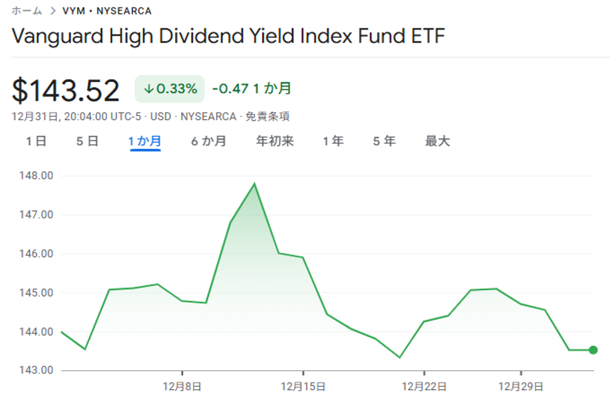 ワタシは、2023年1月からVYM積み立てています。ただ、VYM自体の積立は、2023年12月でやめ、2024年1月からは投資信託の「SBI-SBI・V・米国高配当株式インデックス・ファンド(年4回決算型)」の購入を開始しています。