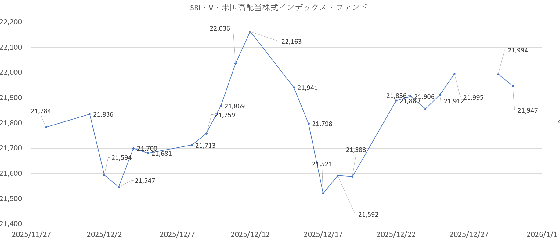 円換算では、投資信託「SBI-SBI・V・米国高配当株式インデックス・ファンド」の価格を表示しています。